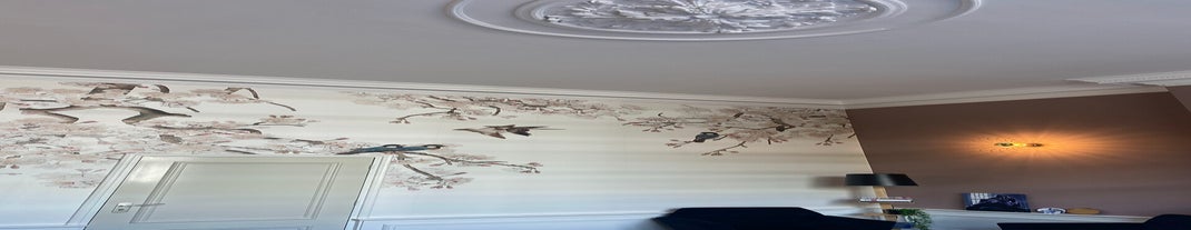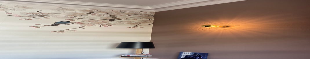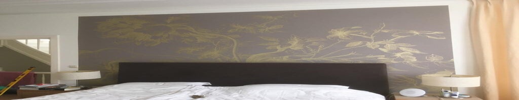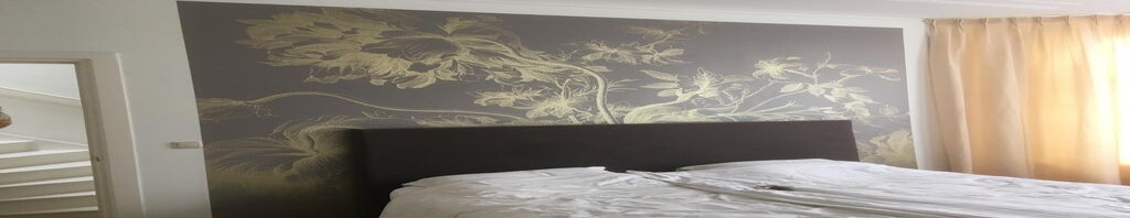 Huiskamer - hal - slaapkamer: alle muren geverfd - behangen - houten panelen aangebracht - verlichting geplaatst (samenwerking Es.Styling en Kikke Spulle)