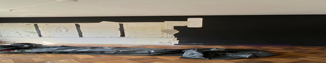 Van zwart/wit spiegelpaleis naar rustig strak appartement! 25 spiegels weggehaald - gestuct en geverfd